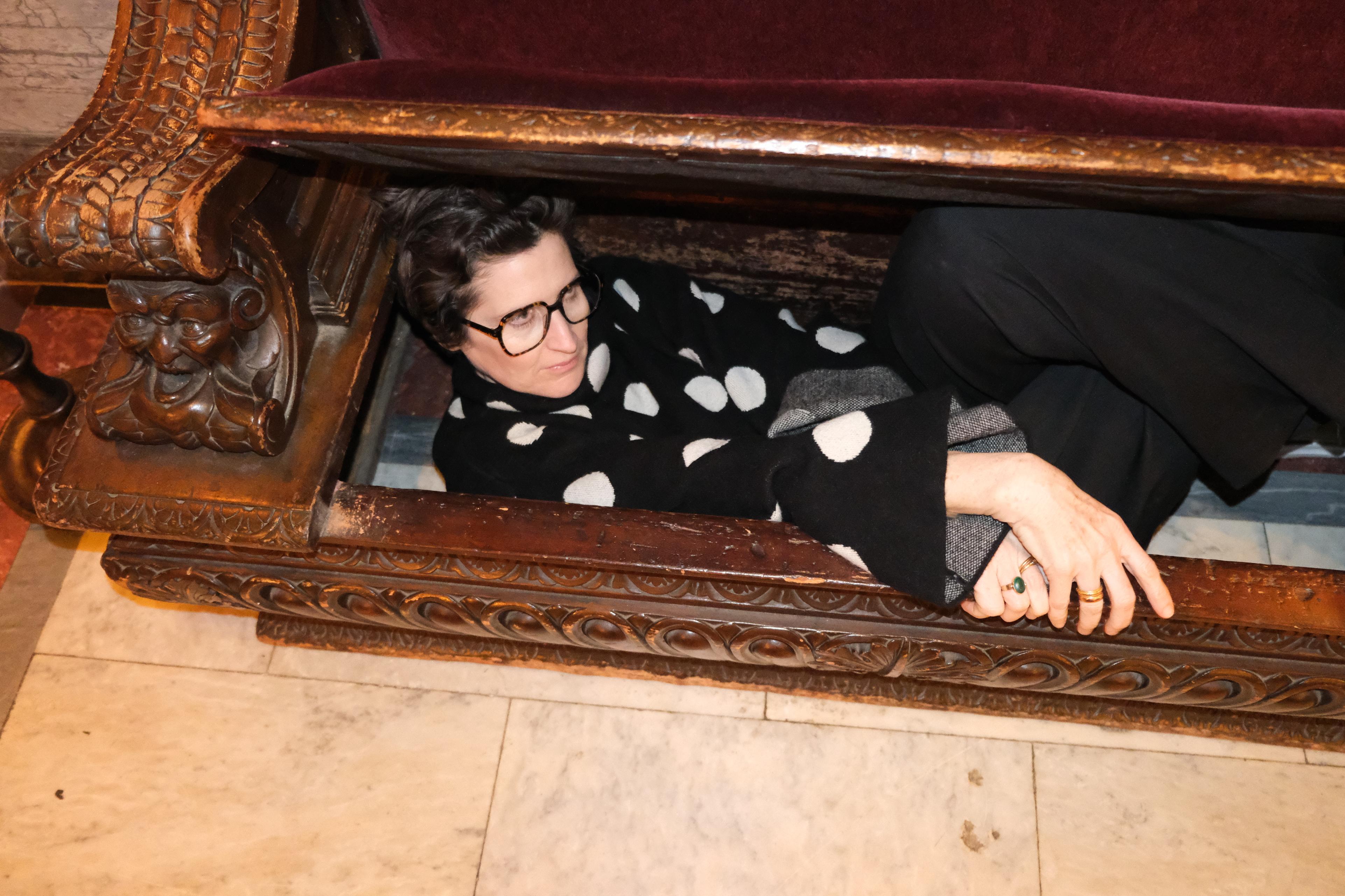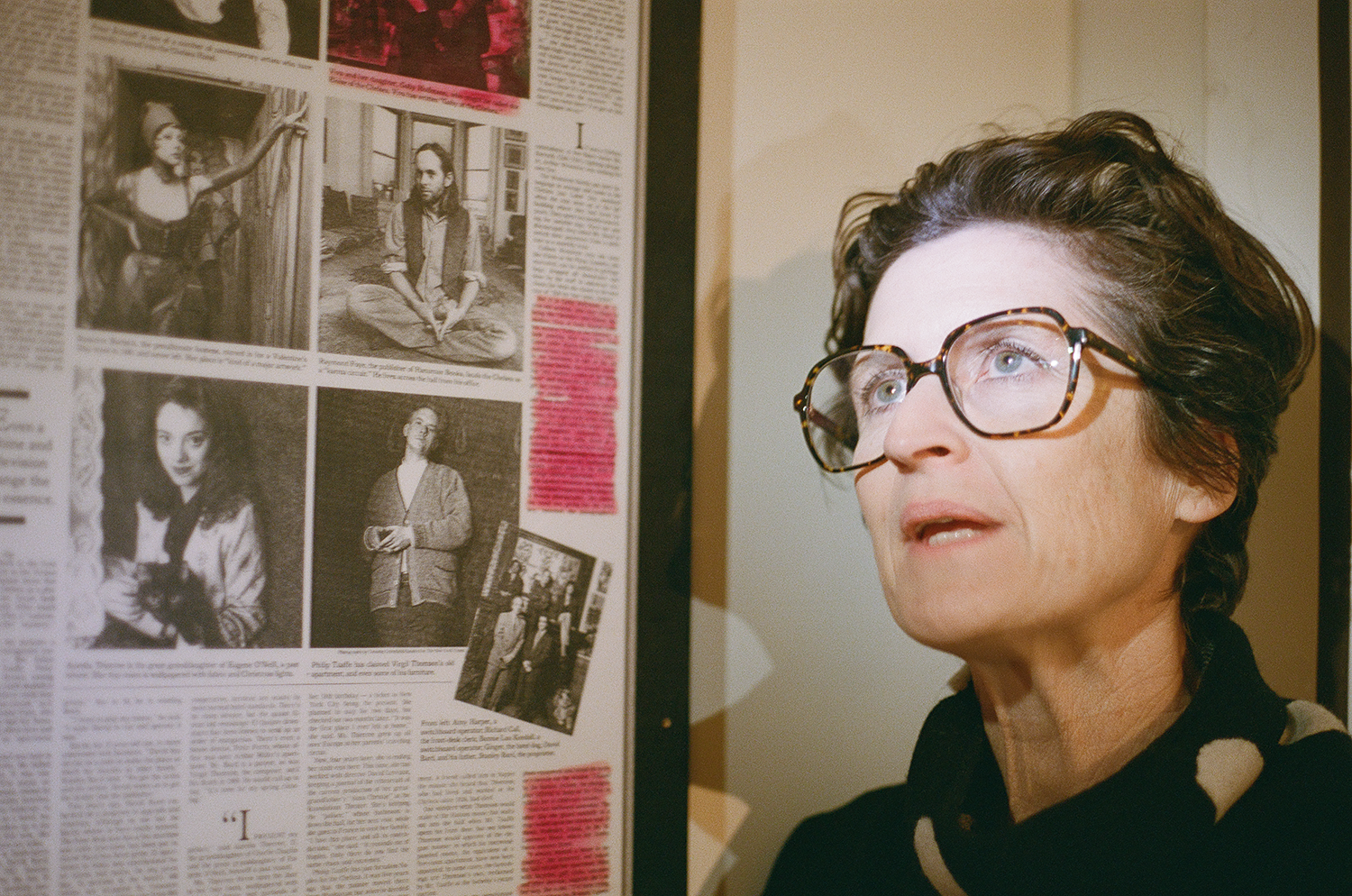 Okay, let's do it. There's a really funny thing where my mom—I actually say this in the book—blacked out her face on this press clipping and they still have it on one of the floors, so we should go upstairs.