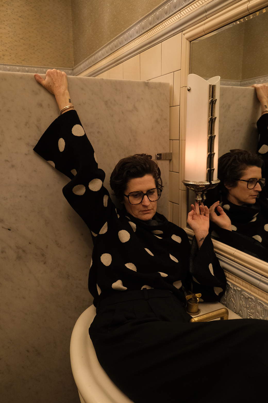I'm not sure. I think it might be dissociation and compartmentalization. It wasn't until it was already out and in bookstores when I was like, Oh fuck. And then my mom is mad and says it's like a stab in the heart and barely talks to me. My sister was like, "I'm so scared for when the book comes out. I love it so much, it's amazing, but I'm really scared." I was like, Huh…I wonder why? I think because of my childhood it's a survival technique, where I'm just like, Don't know, don't care, out of sight, out of mind. I just texted my mom for the first time in a while. I gave her an "I love you" text on Thanksgiving. She wrote something nasty back. I just tried again for my birthday because I felt bad for her. She wrote a nice text back, but it was a long thing about how the book was a stab in the heart. I have this weird thing where I just want to pretend the book doesn't exist with her. I prefer to pretend like nothing has happened because when someone is so mentally dysregulated you can't try to hash out the past, even though they keep trying to. So for my mother, none of the book is true. And I am tempted to be like, "Well, give me some pointers. What isn't the truth?" When I go down that path, it's a real mistake. I end up basically screaming at her via text and then blocking her. So I don't respond to it. I have to keep it at a real surface level. She's like, "I'll send you a cashmere sweater." "Oh great." "What color?" "Black." "Maybe not black." "It's really practical." "Oh, you're right. Well, my mother said you can't wear black at a certain age, but you're still beautiful, you know that."