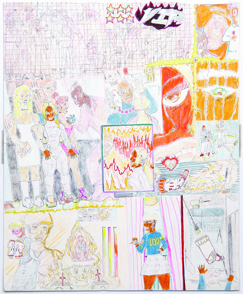 I think it's just natural. It's just my world, people are going to pull from their world. It's a double-edged sword because I think about superduper otaku type kids who can draw in perspective but all the characters look the same—the characters have no soul. Their interactions with people of different genders are unrealistic and not informed by reality. Meanwhile, I'm partying, I'm playing music, and I get to also sit down and draw these characters and be a nerd at my desk. I think that's a fortunate place to be in but it also presents a challenge where I'm stuck between two worlds. I make a lot of like beats with my friend Sam, who's part of this production duo called Spaghetti J. They're legendary in Atlanta rap; they've worked with YSL people and Peewee Longway and K$upreme and I work on a lot of music with them. I could honestly just have a life where all I focus on is being like a rap beat maker guy. Like, "Yeah, I gotta go fucking turn up at this house where he Yeats at at three in the morning and run around and post lean." I could successfully do that as a path in life. And that's not what my friend Sam does, I'm not saying that, but he is more adjacent to that world than I am. And he'll be like, "Let's go to the studio", and I'm like, "Nah, bro, I gotta draw for hours."