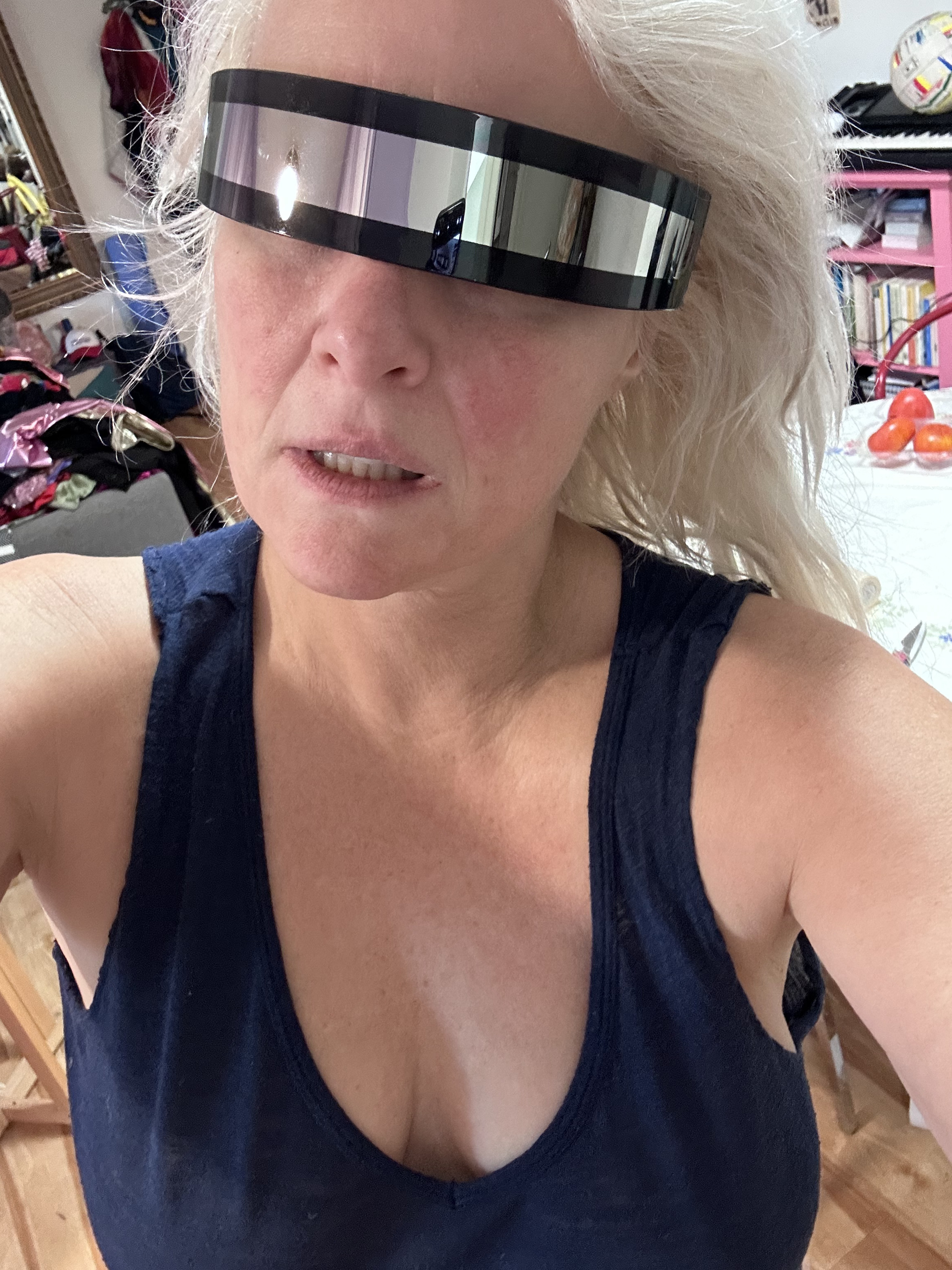 I always love bodysuits and I love 80s makeup and looks and stuff like that. I really have to shout out my gay crew because they would always help style me. I also love looking very space age and like David-Bowie-esque.