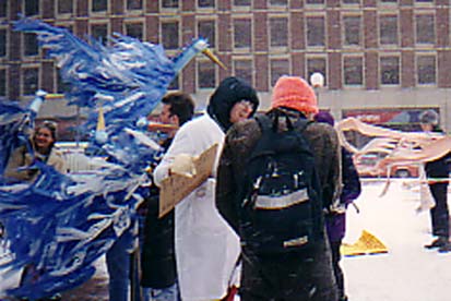 "They're either scary or silly," Kiel said when I asked him what he thought about puppets. It was a brisk morning in early March. We were walking across the Boston Common. I've known Kiel for ten years; I respect his opinions, and I found myself agreeing with his latest. Scary or silly was about right. Our destination – the Boston Puppet Collective and Library – had colored the morning's conversation. I hoped that an hour there might inject some nuance into our opinions. Besides, the collective's website showcased a vast selection of enormous wearable puppet-creatures, and I wanted to put Kiel in one. The collective occupies two basement rooms underneath the Emmanuel Episcopal Church, a stone's throw from Newbury Street's designer outlets and expensive hamburgers. We knocked on a broad door, feeling a bit like speakeasy patrons. A head popped out of the wall to our left: Sara Peattie, head of the Boston Puppet Collective, introduced herself. We shook hands and followed her into her domain. Kiel and I, heads bent under the low ceilings, slowly got our bearings. The space was stuffed with puppets and the materials used to make them: bits of construction paper, pipe cleaners, old newspapers, clay. Peattie explained that we were standing in the collective's workshop. Next door was the library. People were free to come and borrow puppets for parades, school plays or a jaunt in the park. I wondered how often they did that as I wandered around the place. To me, it seemed more museum than library: cavernous; the objects on display unified by their single medium – papier-mache. But the puppets here were not organized according to some curatorial principle; rather, they represented the personal tastes, artistic inclinations and whimsy of Boston's puppeteer community, a community that was clearly craftier and more alive than I had thought possible. Their output was prodigious. Most of the puppets were animals, as if a papier-mache menagerie had escaped from a zoo and found refuge here. Lions and tigers lay curled in corners, a row of seahorses pinned to a wall. A frog, given a slightly dour expression, had made its nest in a heap of fabric. After we finished our tour of the workshop and the library, Kiel and I sat down with Sara. Flanked by a pair of enormous roses and the head of a pterodactyl, we talked about the collective, scary puppets and life as a member of the puppeteering community – "a small town that's all over the world."