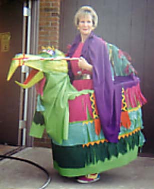 Yeah. Because it's not a puppet of you being something, it's a puppet of you in your proper self, the wonderful person you are riding your steed, or a dragon. But a trend I have noticed is that I have a lot of trouble getting people to understand what a library is. People say, "Oh, you rent puppets," and I say, "No, we loan them." And people in the last few years seem to have trouble understanding things that aren't money-based. I've had people just sort of refuse it. The idea is just too awful for them.