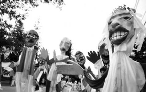 There was a period you couldn't say that, puppet master. But in a sense, yes. Like those Japanese artists who are the only ones who know how to weave sea silk, I'm a puppet master in the sense that I know an awful lot about what to do with a piece of cardboard – something other people have no reason to know. Puppet master isn't a real term. It's something people say about someone who can do things that other people can't necessarily. When I started doing these workshop parades, where we put together a parade with people who haven't done one, that was like "Ok, I'm a master." Because I'm doing something people don't do, or wouldn't want to.